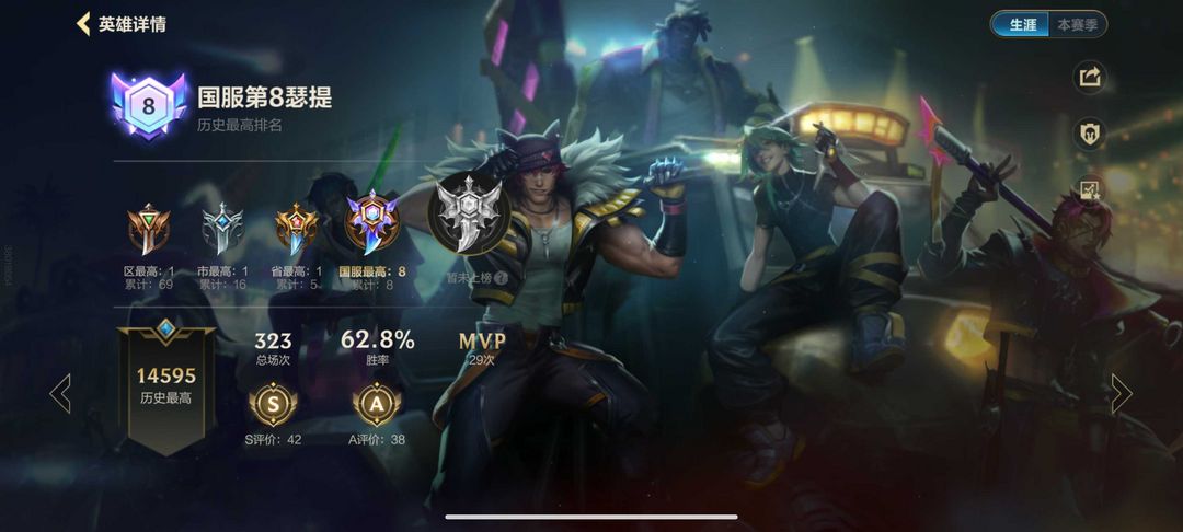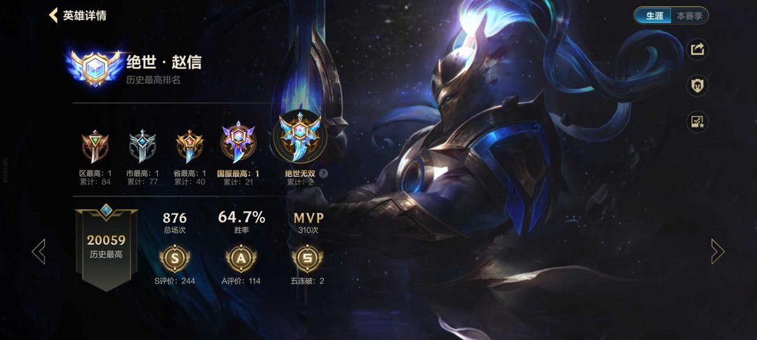 【魂】历史2w分绝世无双国一赵信✨历史国八腕豪✨铂金段炸鱼带妹可排❤️满英雄137皮野王带妹拉分号