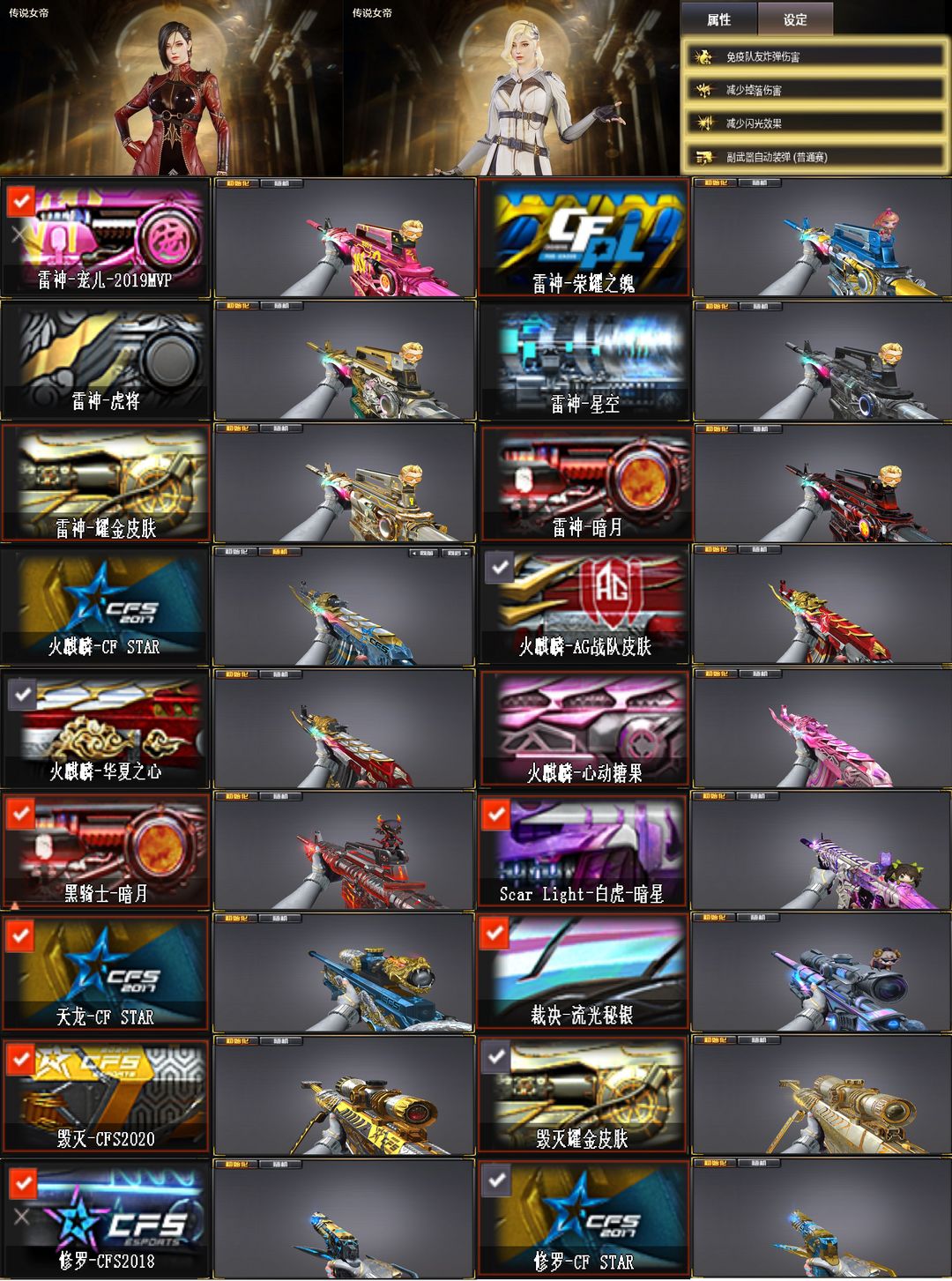 【装备道具】:传说灵眸★传说女帝★幻神黄忠★幻神巅峰荣耀★毁灭CFS2020★毁灭耀金/毁灭暗月/毁灭风暴/裁决流光秘银/雷神宠儿2019MVP/传说女帝 樱/炫/零/迷迭香/葵/M200-幻神/王者幻神-觉醒版/堕天神套装★屠龙-动感闪耀 音效卡/裁决音效卡/极光音效卡/M200-幻神音效卡/黑骑士音效卡/金色蔷薇音效卡/白虎音效卡/火麒麟音效卡/毁灭音效卡/雷神音效卡★传说女帝★王者幻神-觉醒版★王者星神★M4A1-堕天神★王者之决★M4A1-雷霆★王者之魄★王者冰魄★王者龙血★HK417-朱雀★白虎-电玩蓝免★M14EBR-玄武★5car白虎★王者蔷薇★COP-堕天神★COP雷霆王者★雷霆之契★幻灵之锋★王者芳薇-觉醒版★王者火魄★荣耀之魄★雷神-虎将★雷神-耀金★白虎-暗星★火麒麟-华夏之心★炫金雷神★炫金毁灭★炫金骑士★炫金天龙★炫金千变★炫金超新星★王者之武★王者之戮★王者之怒★王者之光★王者之力★王者之幻★火麒麟-灵狐★天龙-曼陀罗★雷神-星空★荣耀之证卡牌★变异宝贝死亡对讲机不退包★佣兵觉醒无需换弹手斧镜减速雷★捕食者之眼查看血量★