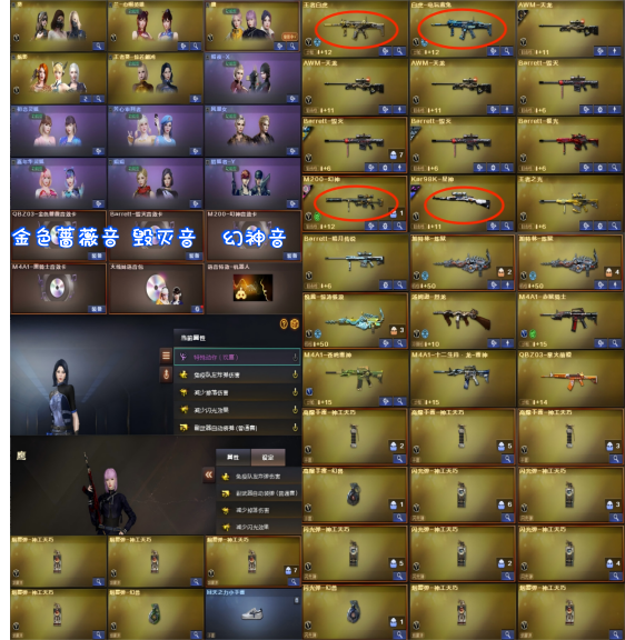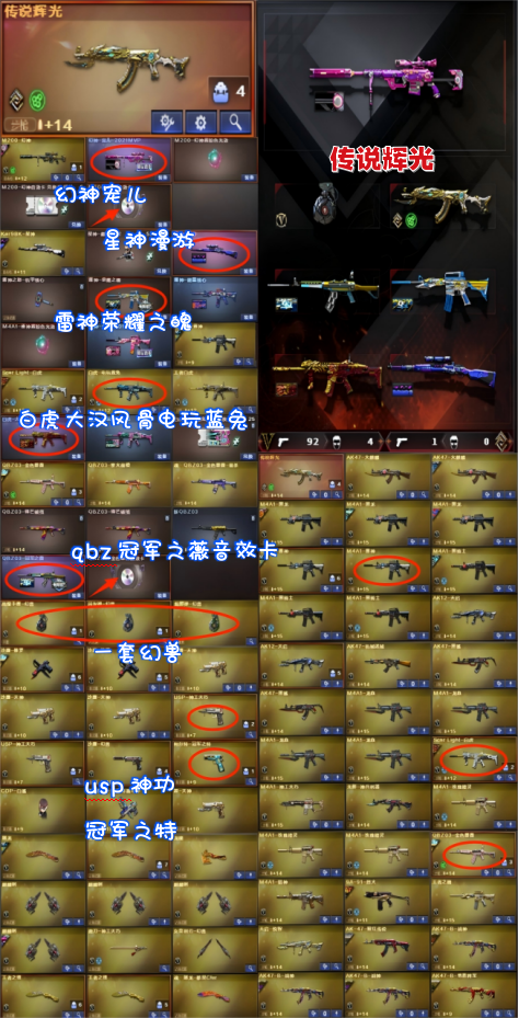 本游戏账号:英雄武器86个; 王者武器14个。 装备不多,但是主武器、副武器、近身武器够用 拥有完美游戏体验。重要的是,特殊装备有:M4A1-玫瑰精灵、M200-幻神、AK47-火麒麟、加特林-炼狱、麒麟刺、传说辉光、王者之光-觉醒版、炫金天龙、王者之锋-觉醒版、炫金毁灭、炫金骑士、王者白虎-觉醒版、王者之魄-觉醒版、魅影、堕天使、M200-幻神音效卡、王者之魄金色光效、生化弹匣、M4A1-黑骑士音效卡、等,随意畅选。