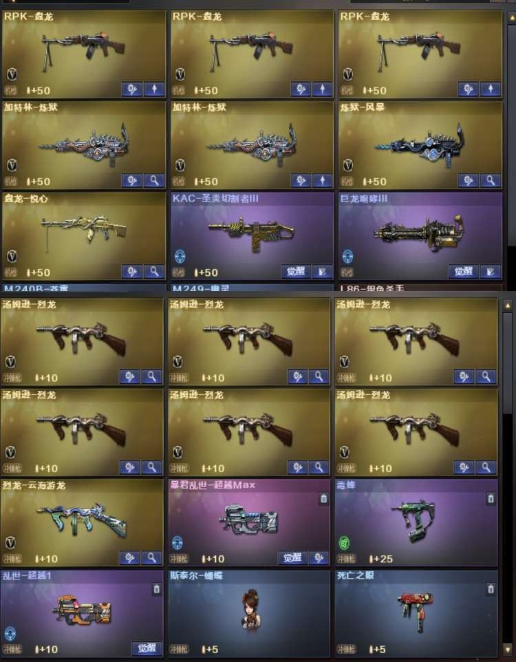 2幻神(7皮)2星神/蝴蝶刀/冠军之特/G36C幻影/星神/白虎/天戎/6盘6烈加特林毒蜂蝴蝶