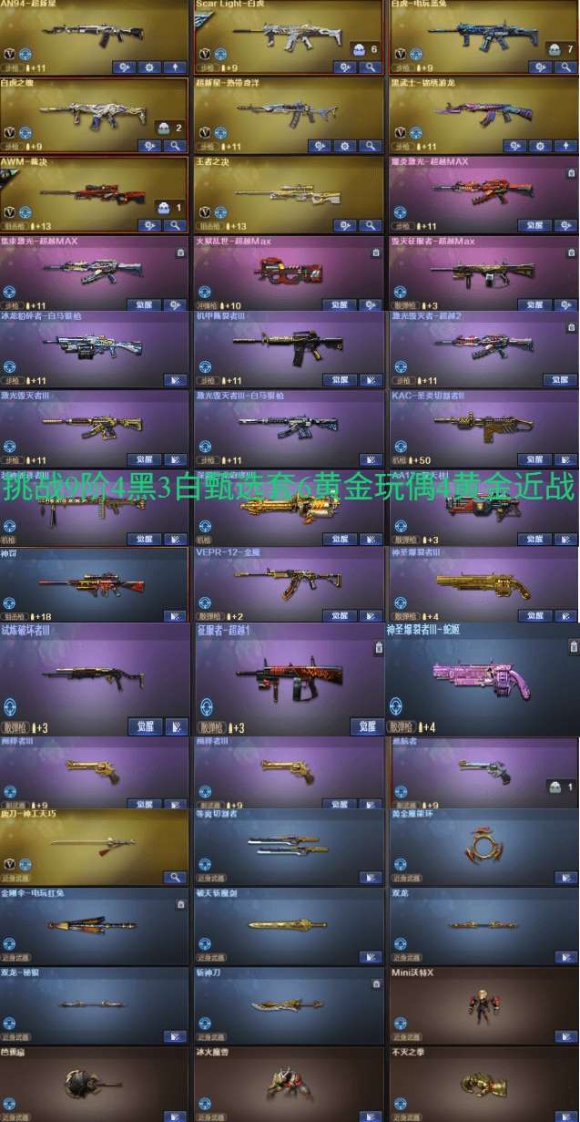 挑战9阶4黑3白4黄金武器6黄金玩偶满配 生化6烈蝴蝶毒蜂 6盘炼狱