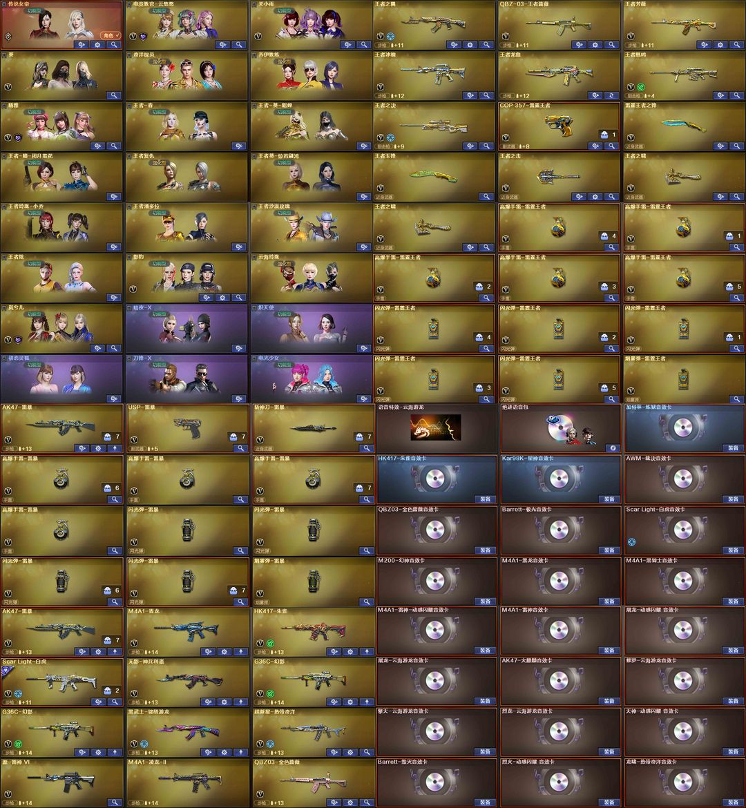 【装备道具】:荣耀之魄-CFPL十周年臻藏版★3传说/传说女帝/传说灵眸/幻神三件套/幻神★宠儿幻神MVP★幻神音效卡/幻神周瑜/传说圣灵/98K-星神/星神音效卡6盘龙★6烈龙/6修罗/斯泰尔蝴蝶/炽芒蝶刃/柯尔特冠军之特/白虎/白虎音效卡/白虎霓虹机甲/朱雀/朱雀音效卡/QBZ金色蔷薇/QBZ王者蔷薇/星神炽天使/Cop雷霆王者/USP雷暴/G36C幻影/青龙/【四防已开】/传说女帝/电竞教官云悠悠/王者春/王者葵貂蝉/王者瞳闭月羞花/王者葵惊若翩鸿/王者玲珑小乔/王者潘多拉/王者沙漠玫瑰/王者炫/岚兮儿/【角色】/关小雨/葵/奇洋探员/乔伊教练/晴雅/王者复仇/影豹/云海玲珑/【音效卡】/炼狱音效卡/白虎音效卡/龙啸热带奇洋音效卡/雷神动感闪耀音效卡/毁灭音效卡/烈火动感闪耀音效卡/天神动感闪耀音效卡/黑龙音效卡★雷神音效卡★黑骑士音效卡★火麒麟音效卡★朱雀音效卡★云海游龙音效卡★极光音效卡★王者之决★冠军之势★黑骑士伏羲★荣耀之怒★毁灭AG冠军★毁灭2022★生化弹夹防化服变异宝贝死亡之眼★佣兵觉醒手斧镜减速雷★捕食者之眼死亡之眼超级对讲机不退包★超级背包无需换弹查看血量★11