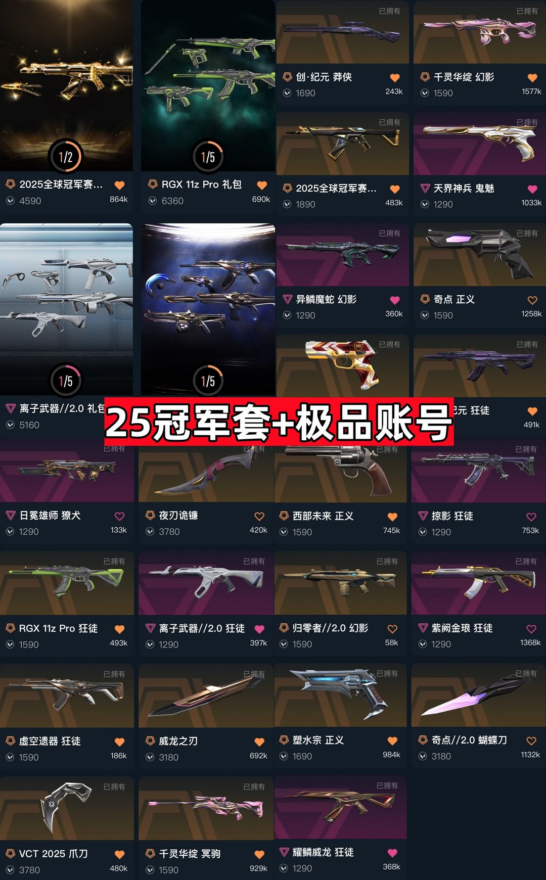 禁排✅25冠军⭐创纪元掠夺紫金离子2.0威龙虚无显卡狂徒⭐vct爪刀蝴蝶刀威龙之刃⭐异鳞魔蛇千灵华绽