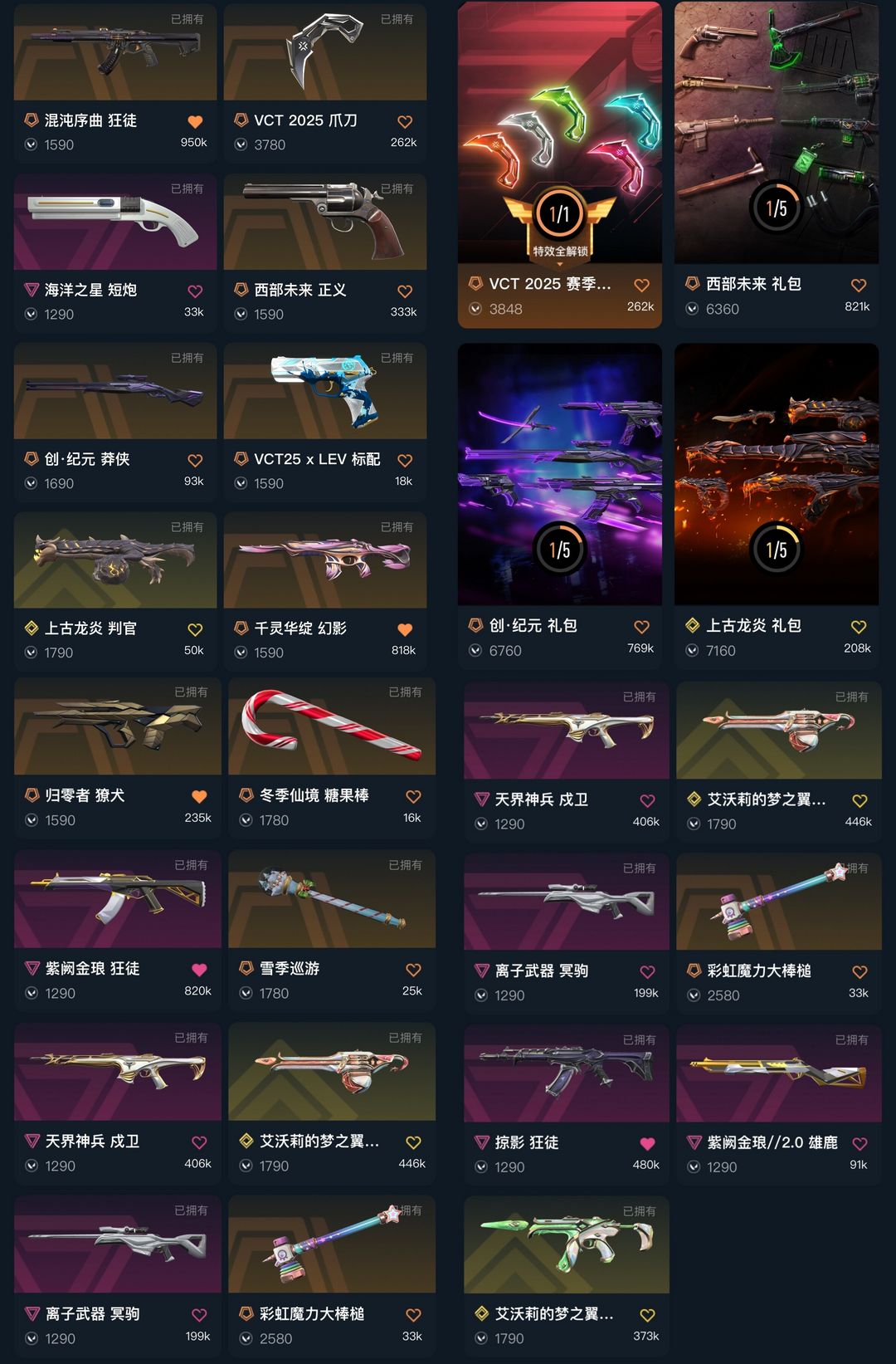 可排位★精品★VCT爪刀西部未来创纪元★掠夺紫金ak★千灵华绽m4★天界戍卫★梦之翼奥丁★离子冥狙