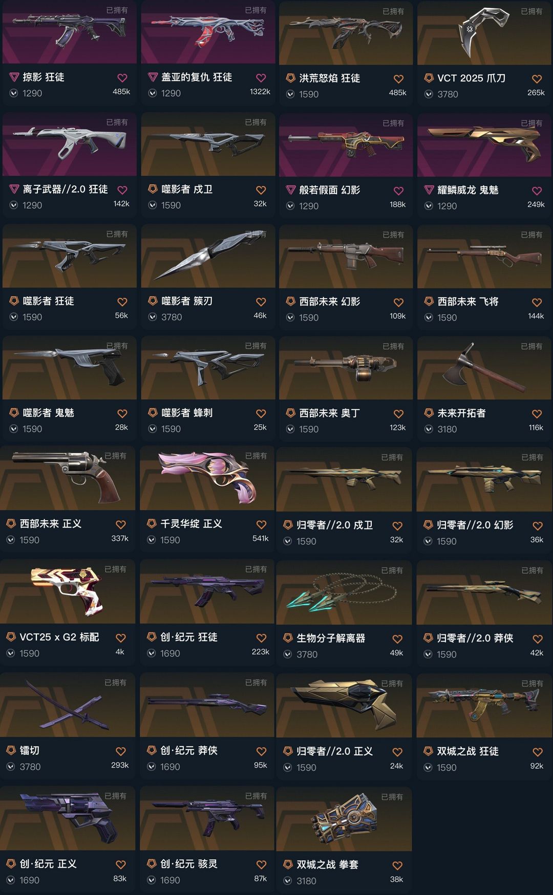 可排✅离子2.0⚡VCT爪刀⚡西部未来⚡镭切创纪元⚡噬影者⚡双城之战套⚡掠夺⚡归零者2.0盖亚般若