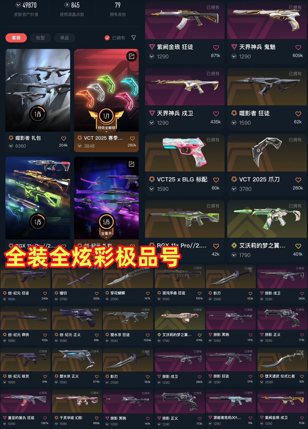 可排✅VCT爪刀⚡噬影者⚡镭切创纪元⚡掠影⚡盖亚⚡紫阙金琅⚡天界⚡源能者危机⚡VCT25标配