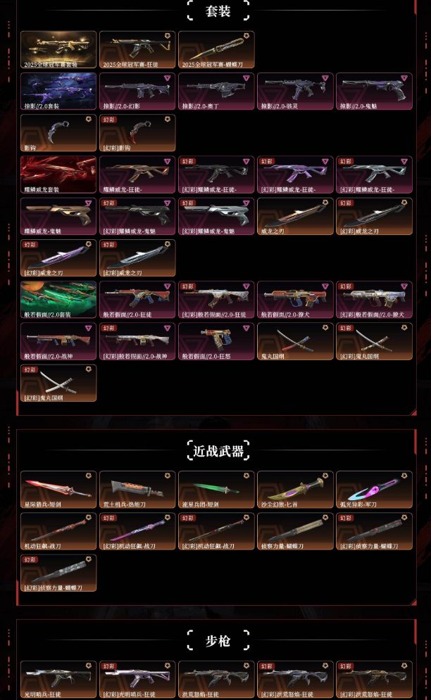 25冠军掠影2.0耀鳞威龙般若假面2.0侦察力量蝴蝶刀光明哨兵狂徒洪荒怒焰狂徒归零者狂徒奇点幻影堕天遗武狂徒盖世英雄狂徒紫阙金琅狂徒冰点凝结狂徒归零者2.0莽侠起源冥驹vctedg标配奇点正义