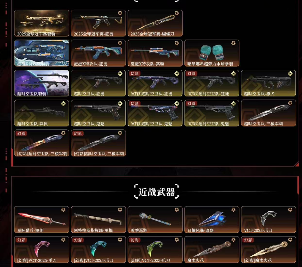 ✅可排位8W库存⭐25冠军套⭐超时空套⭐滋滋X特攻队套⭐魔术火花VCT爪刀⭐开挂必起诉炸鱼顶号撤单