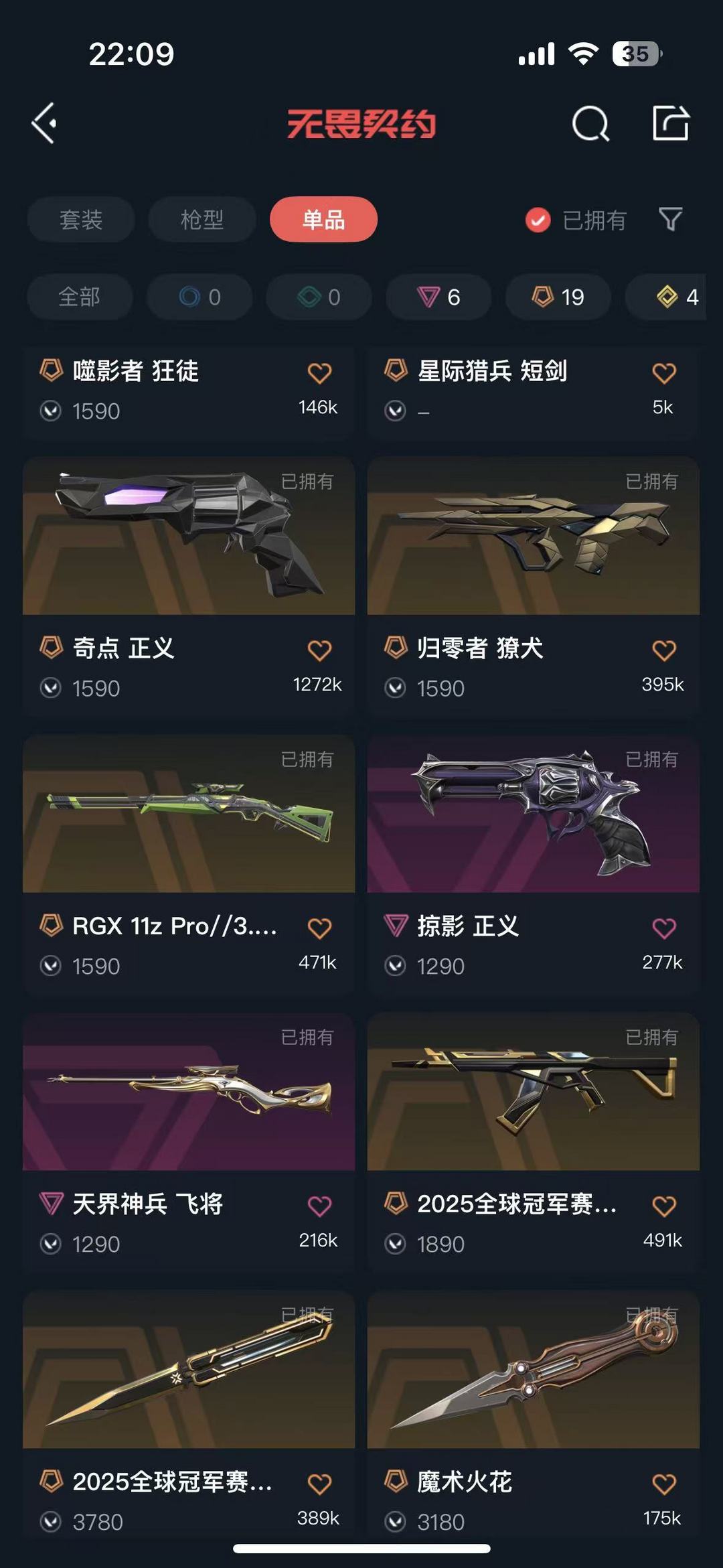 传奇数量:19