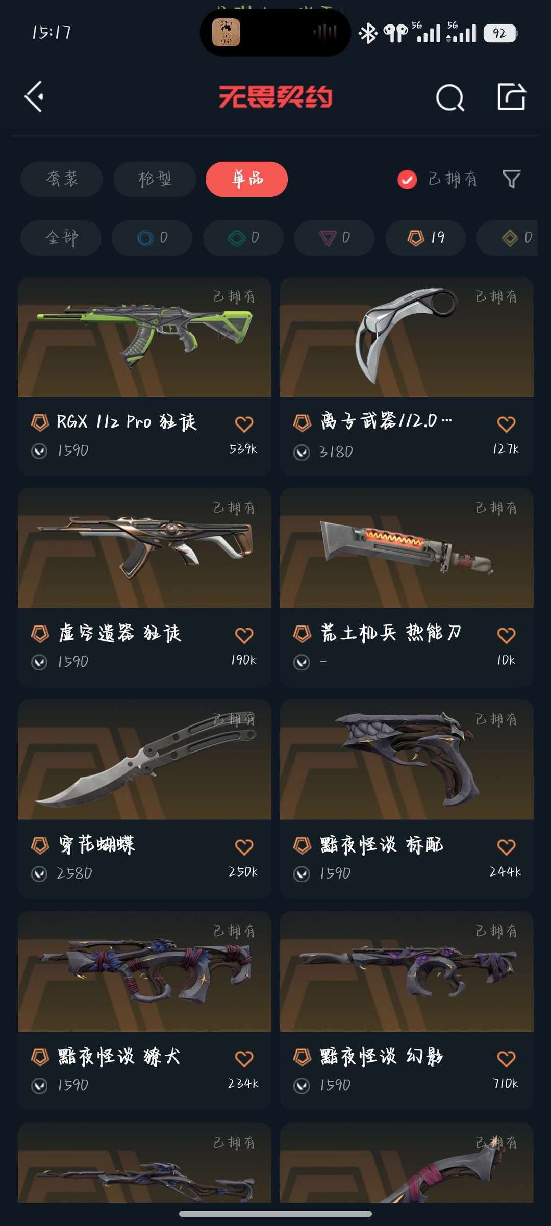 传奇数量:19