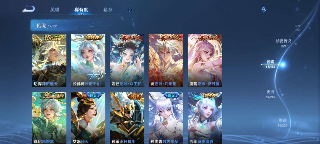 本游戏账号: ,英雄多,皮肤多。典藏皮肤1个,感受典藏皮肤带来的优质体验快感,FMVP皮肤3个,尽情享受FMVP皮肤带来的主角光环, 私人所属英雄皮肤有:铠 银白咏叹调妲己 愿照·众生和||上官婉儿 神器·万象笔||桑启 鸣野蒿||后羿 黄金射手座||虞姬 启明星使||虞姬 愿照·岁时盈||澜 愿照·九州拓||孙策 末日机甲||女娲 补天||铠 绛天战甲||孙尚香 末日机甲||孙尚香 异界灵契||李信 一念神魔,等等