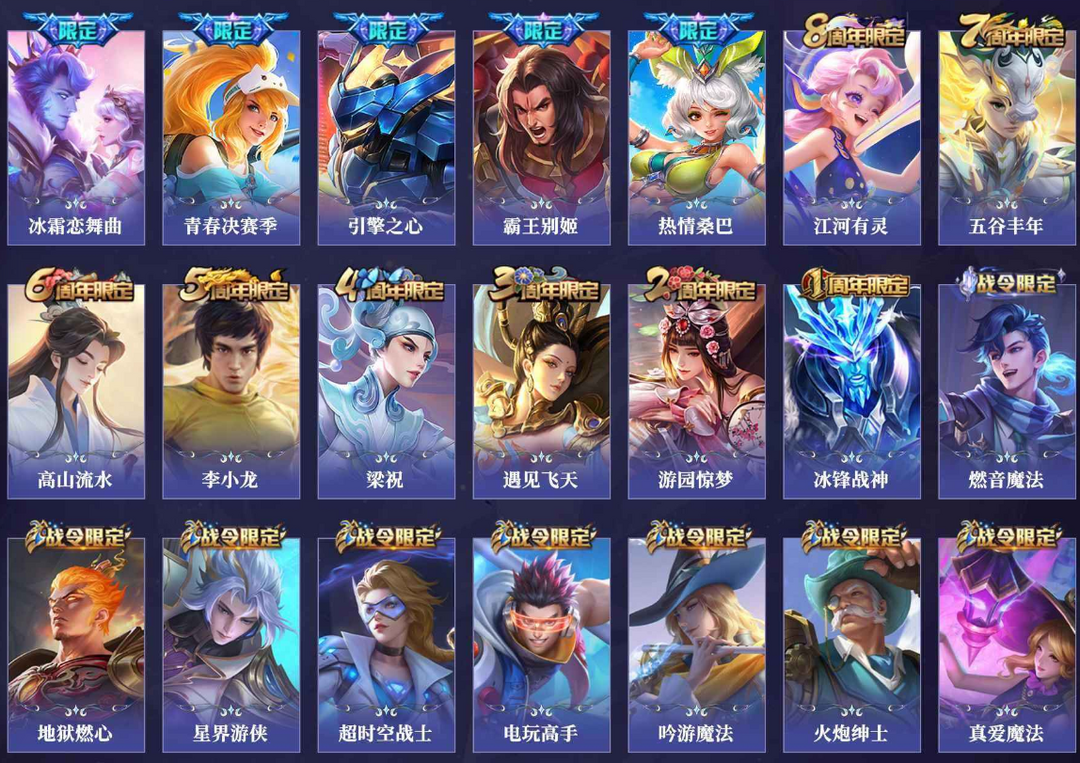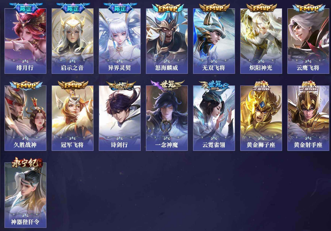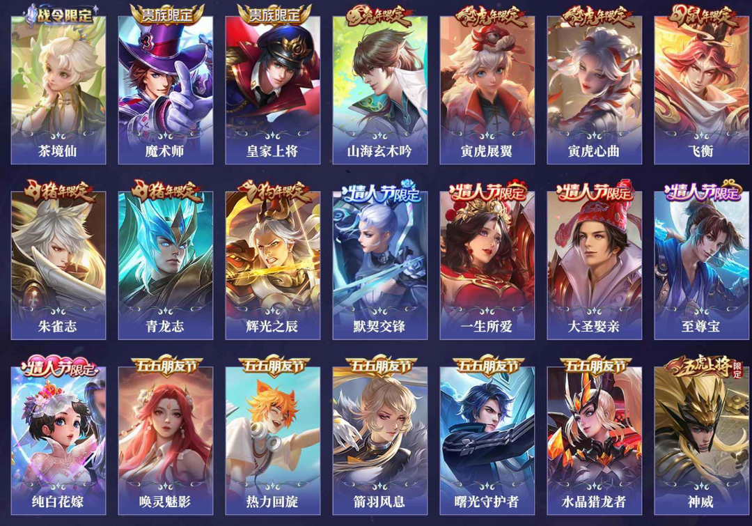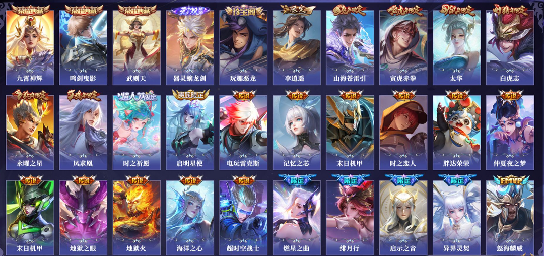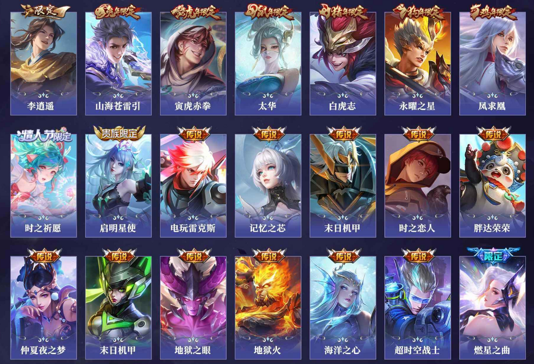 花木兰李白荣耀典藏✨曜无双皮肤✨老虎梅西限定✨瑶情人节限定✨伽罗太华✨李白凤求凰✨杨戬狗年限定✨
