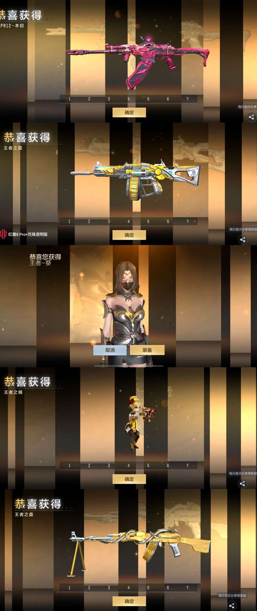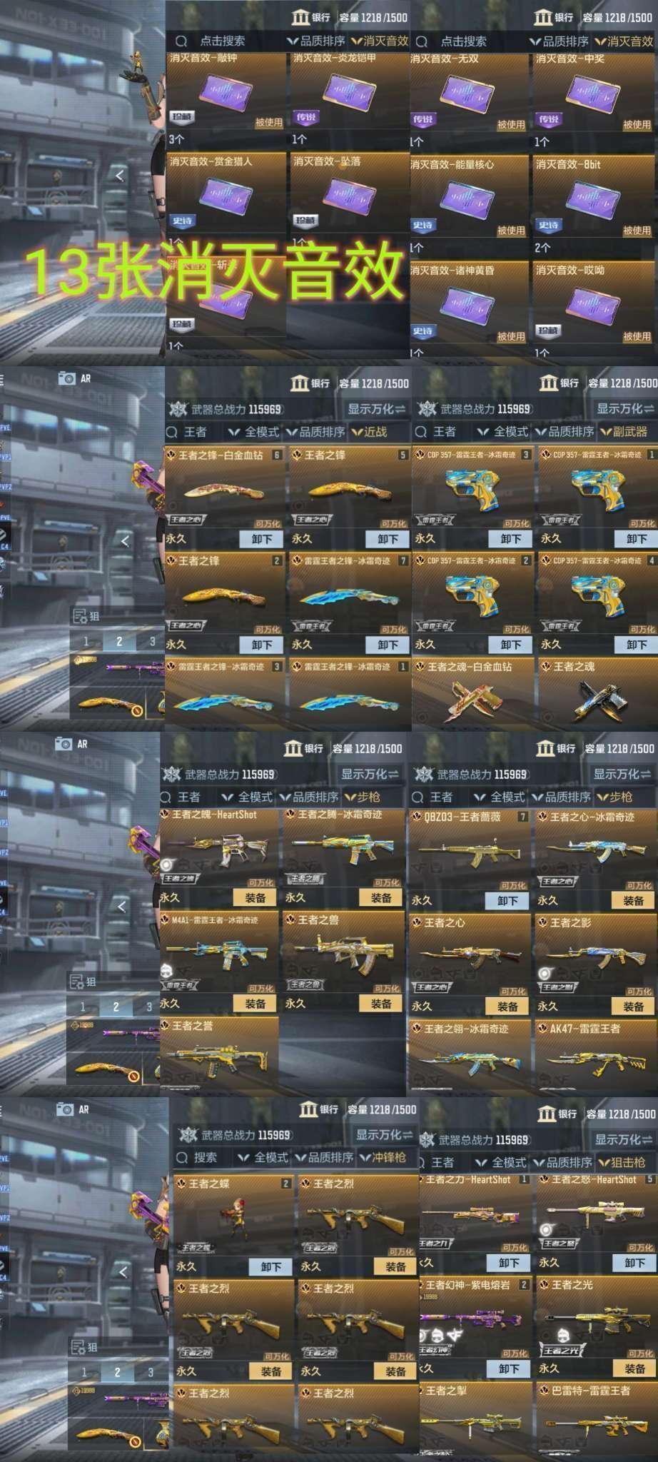 主流王者武器有【王力】【王翎】【王者蔷薇】【雷霆m4】【雷霆ak】【雷霆狙】【王腾】【王魄】【王心】【王影】【王怒】【王擎】【王光】【王幻】【王蝶】【王狱】【王者cop✘4】【王峰✘4】【雷霆王峰✘3】