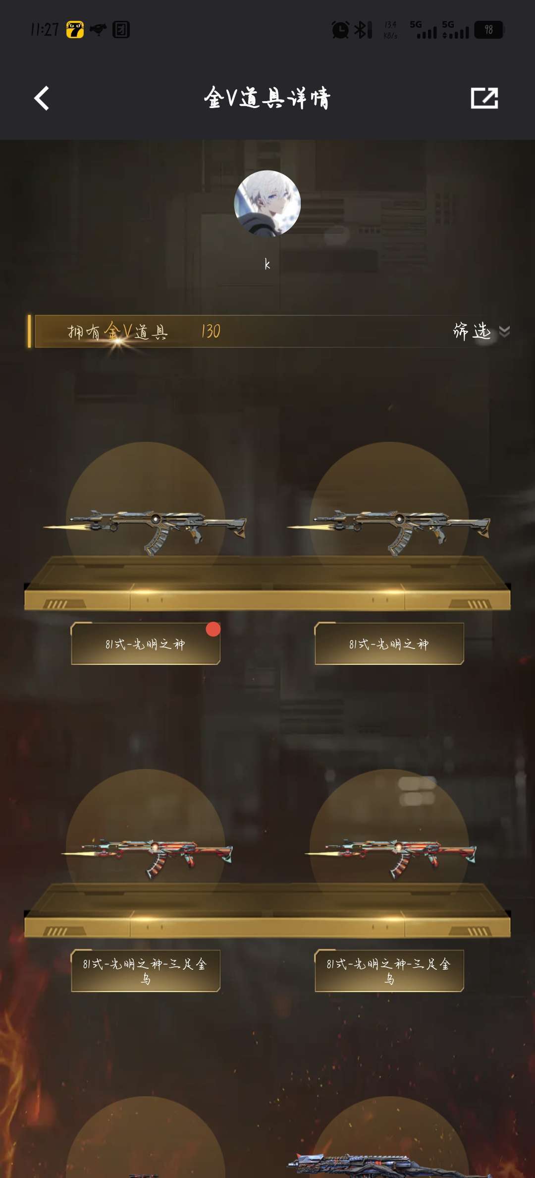 81-光明之神 -三足金乌 AWM-天龙魔神 AWM-裁决 HK417-朱雀 KSG-孟获 诗仙套装 加特林-炼狱 本初副武器和刀 巴雷特毁灭 擎天觉醒
