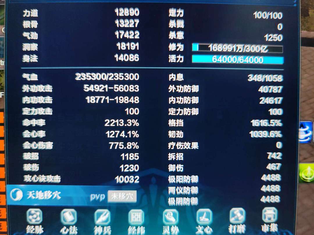 功力20w,战力19w,魅力2w,全门派pve会伤800-900,转职看衣柜