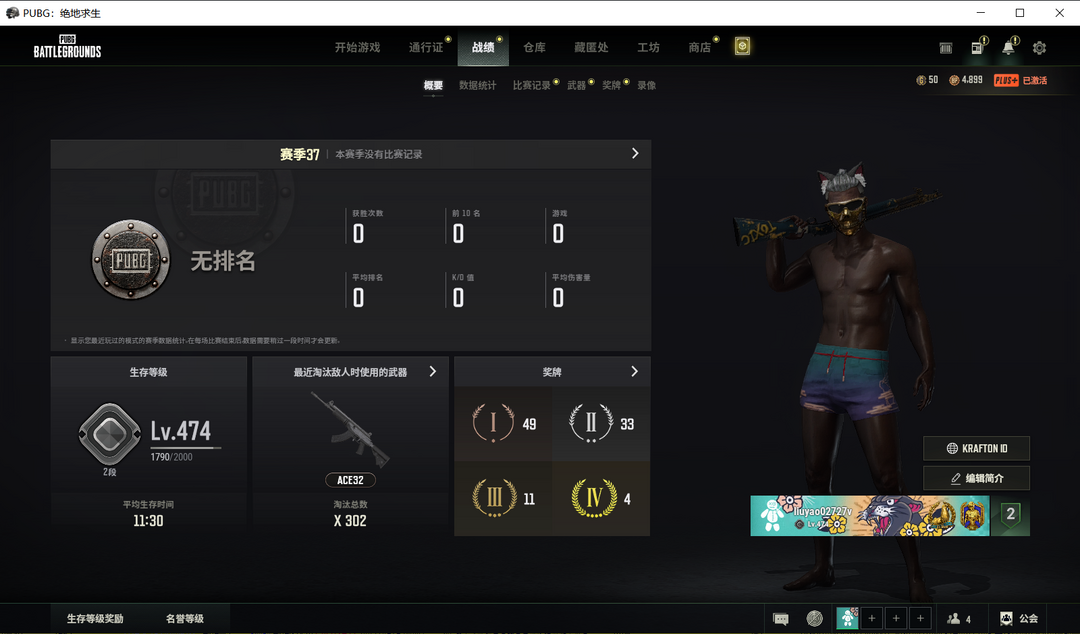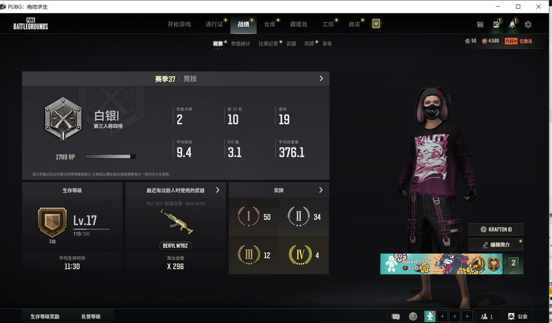 可排位✅生存满✅传说武器✅大老黑✅坏兔子金面具粉色电磁背包✅M4☆AKM☆M762☆98K☆M24M