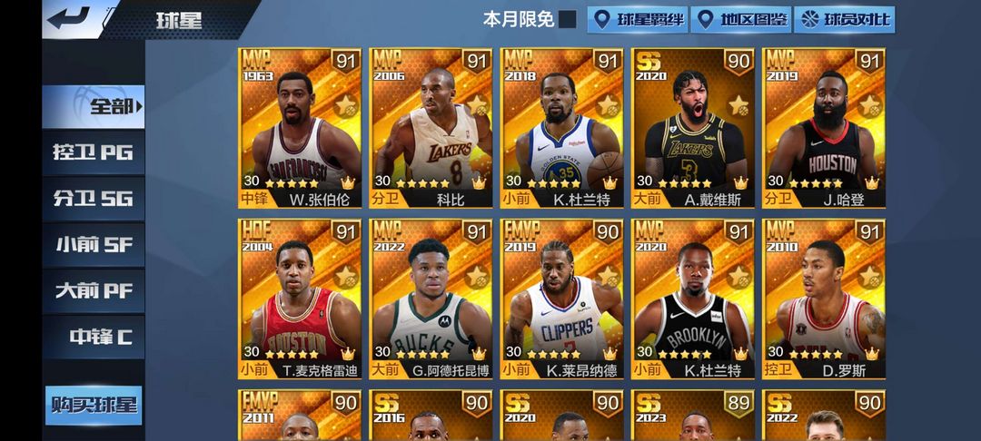 信誉分充足可排位 12天选大帅张伯伦浓眉库里杜科比詹姆斯杜兰特字母77哈登邓肯等 超多特效
