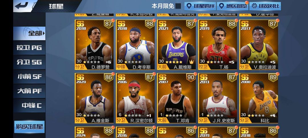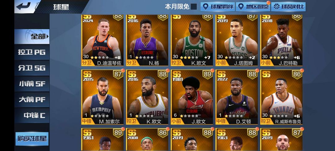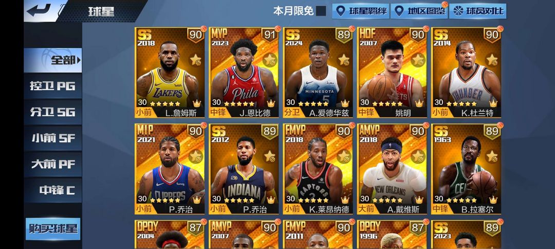 点卷步行者乔治,快船乔治,大帝恩比德,爱德华子,猛龙卡,拉塞尔,戴维斯,欧文,雷霆威少等等…