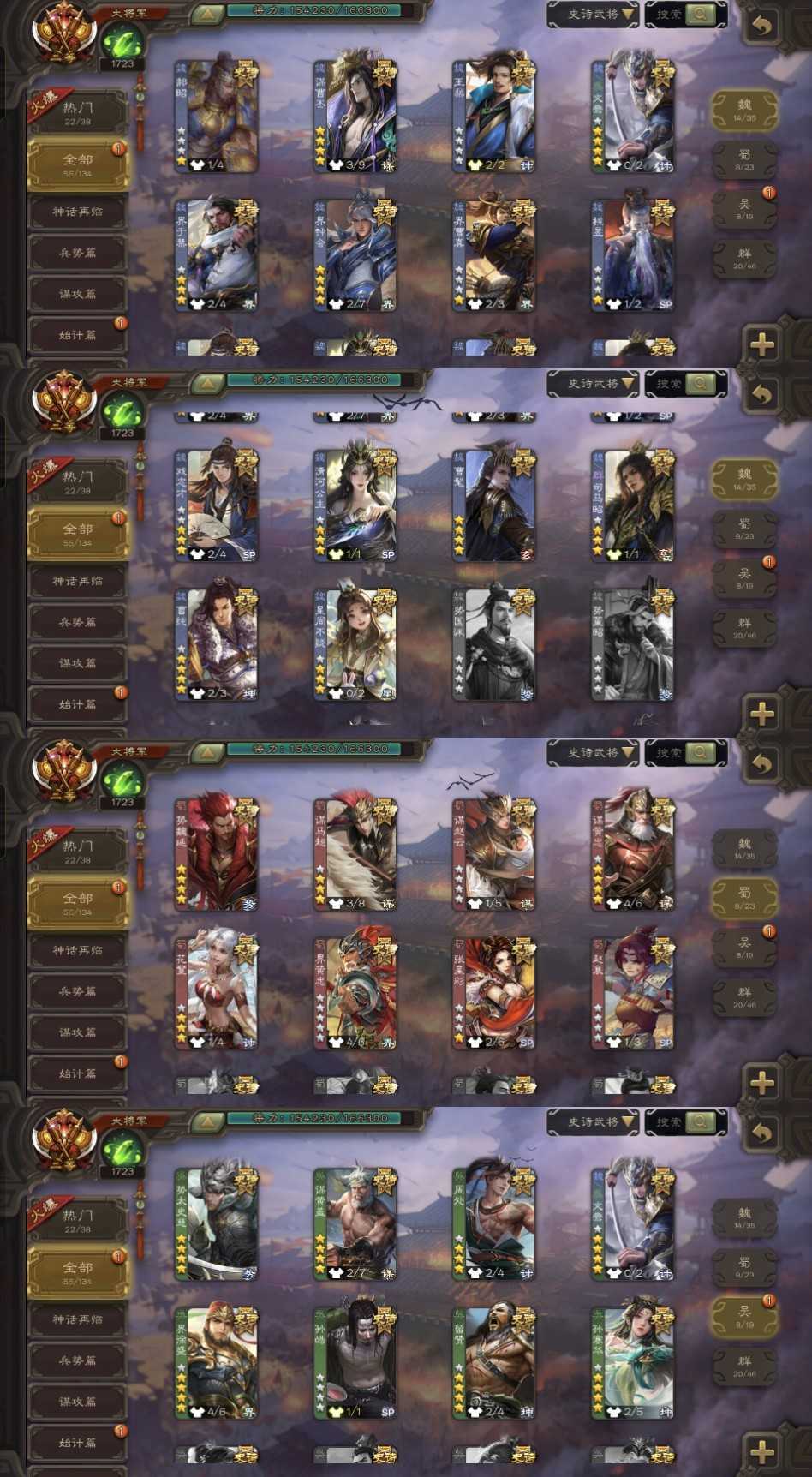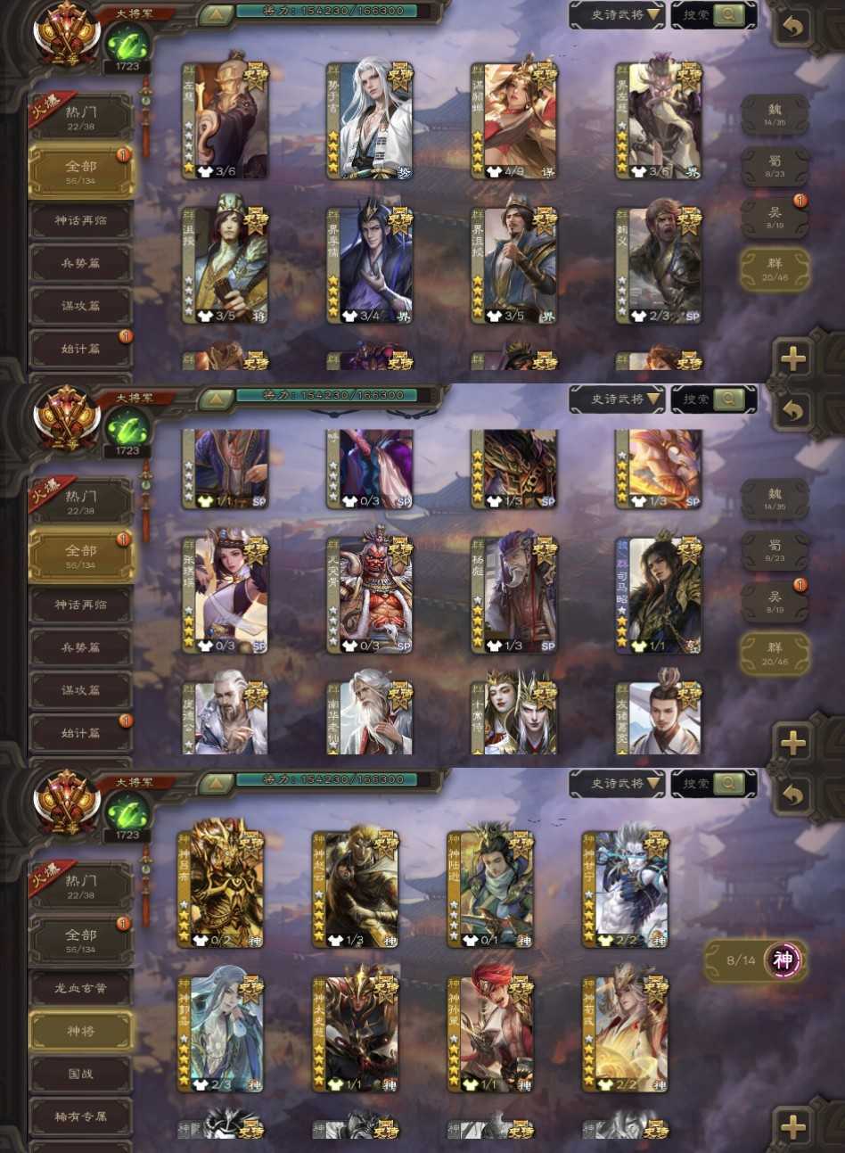 有卡!势魏延回廊十常侍友诸葛势于吉/刘焉曹髦新回廊神甘宁界沮授/势太史慈回廊谋黄忠神荀彧神郭嘉