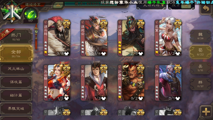 【有点将卡】回廊动神郭嘉-谋关羽-动谋曹丕界钟会-动界徐盛(大宝)动谋孙权留赞动谋貂蝉回廊杜预界左慈