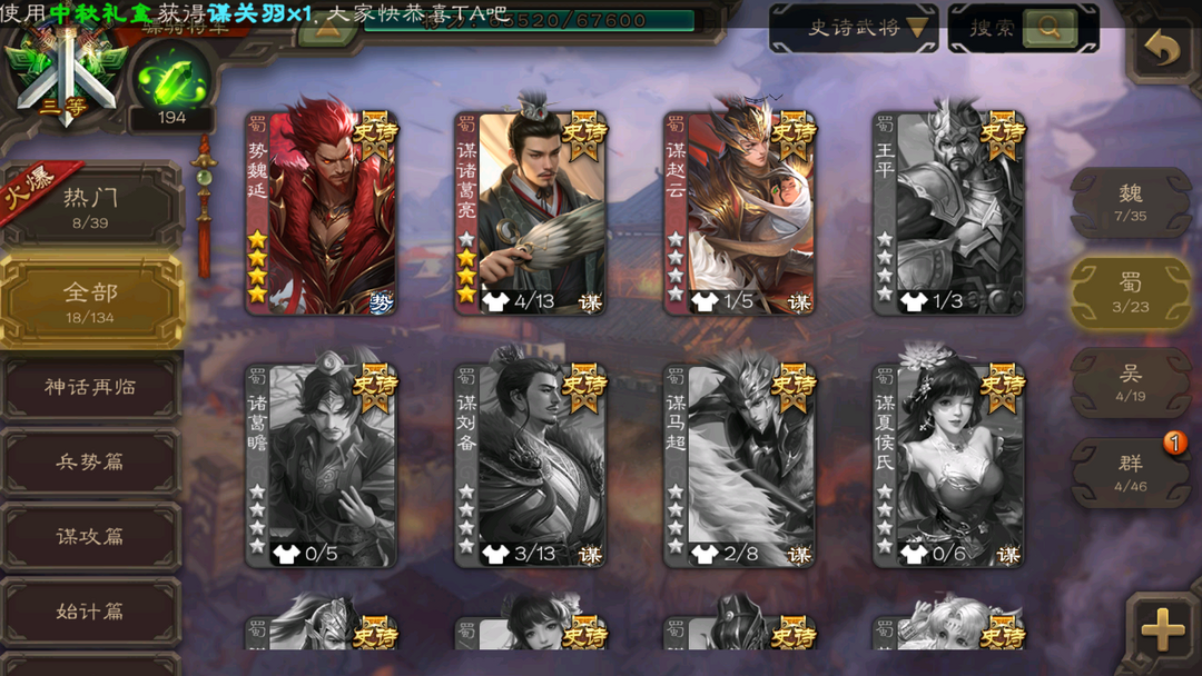 【有点将卡】◆新氪张奋◆势魏延◆势若万钧文鸯◆谋诸葛亮◆神司马懿◆界李儒◆戏子