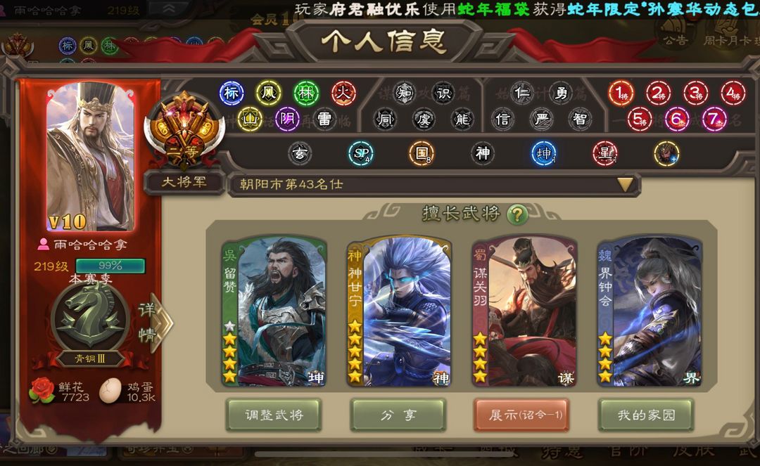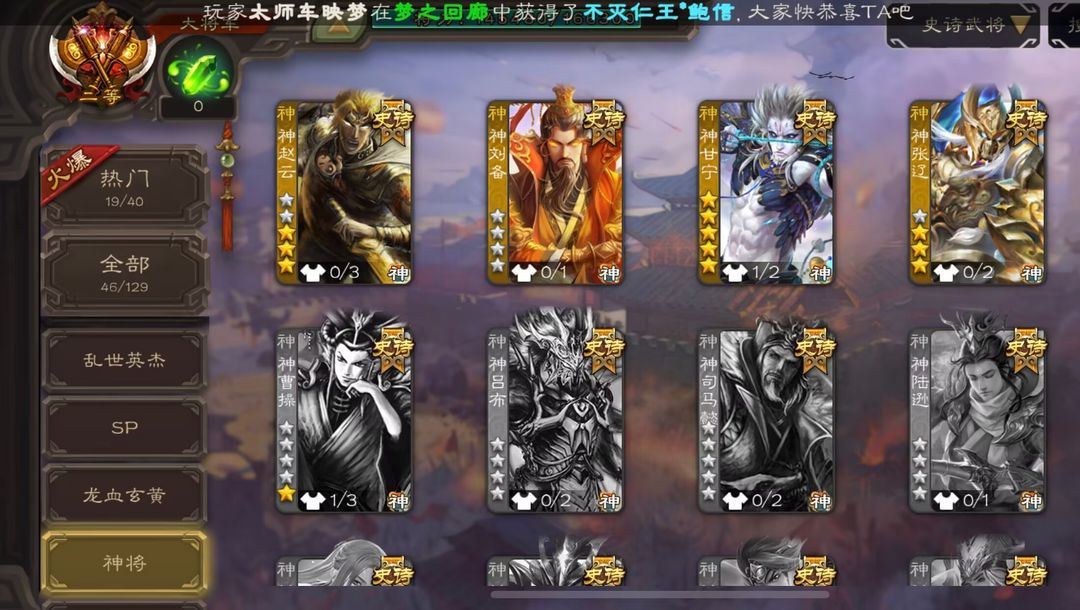 官方二等大将军 回廊谋关羽 潜蛟窥天回廊界钟会 动态神甘宁 文鸯 孙寒华 杨彪 动态戏志才 动态界左慈 歌王留赞 界徐盛 动态王元姬 祢衡 回廊界李儒动态许攸等多热门史诗二等大将军