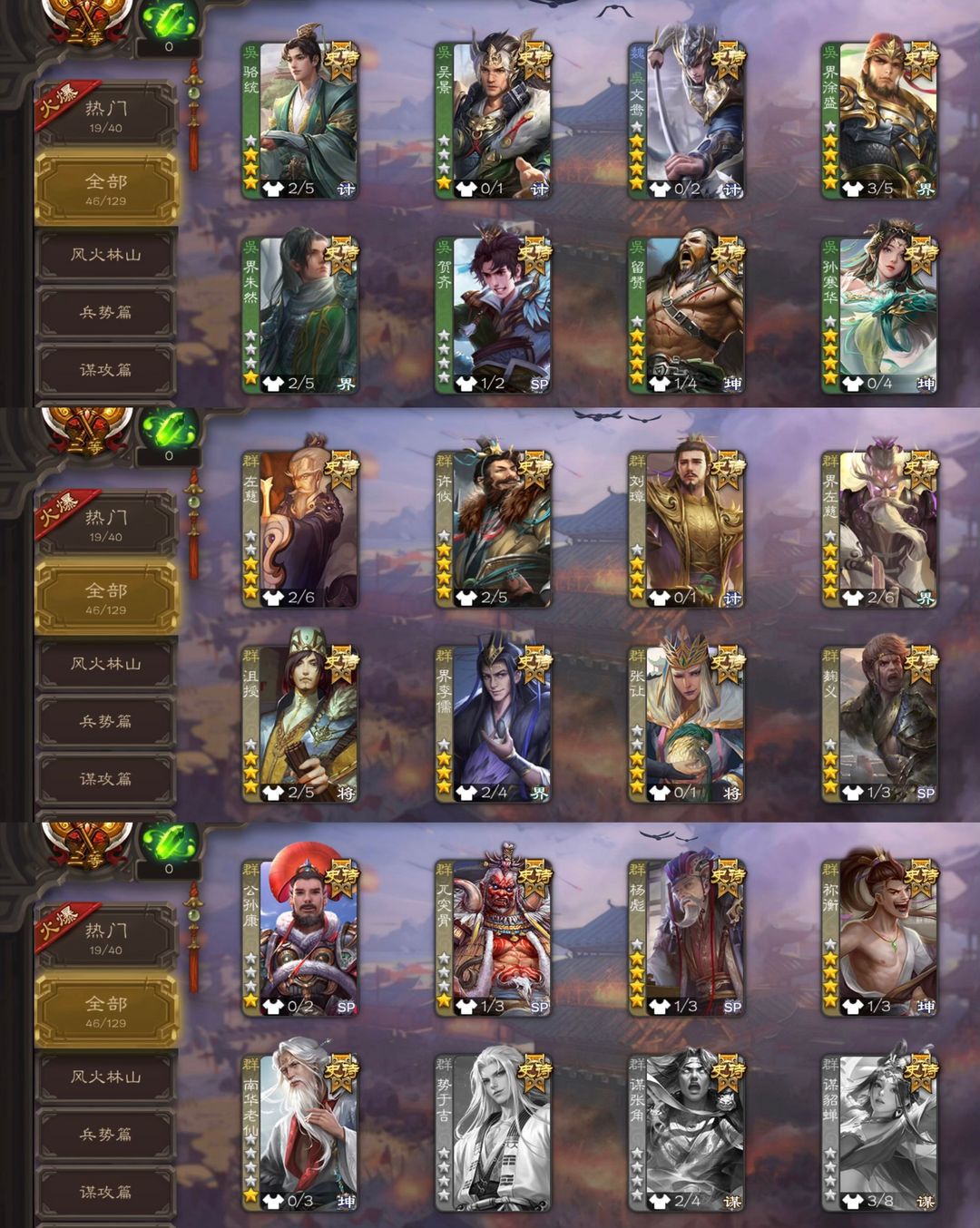官方大将军 动态谋关羽 动态回廊刘焉 动态神荀彧 神郭嘉 杨彪 马钧 大宝界徐盛 南华老仙 王元姬 动态腾格尔留赞 祢衡 动态界李儒 神陆逊