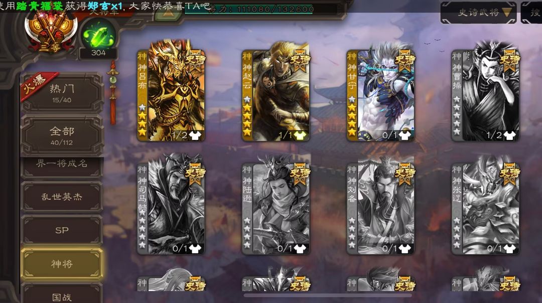 官方热门大将军。势若万钧回廊文鸯 潜蛟窥天回廊界钟会 动态刘焉 神甘宁 回廊动态大宝界徐盛 裴秀 动态谋孙策 动态界左慈 腾格尔留赞 冠绝天下神吕布 动态戏志才 南华老仙 动态神赵云 傅佥 星周不疑 卑弥呼等多热门史诗大将军