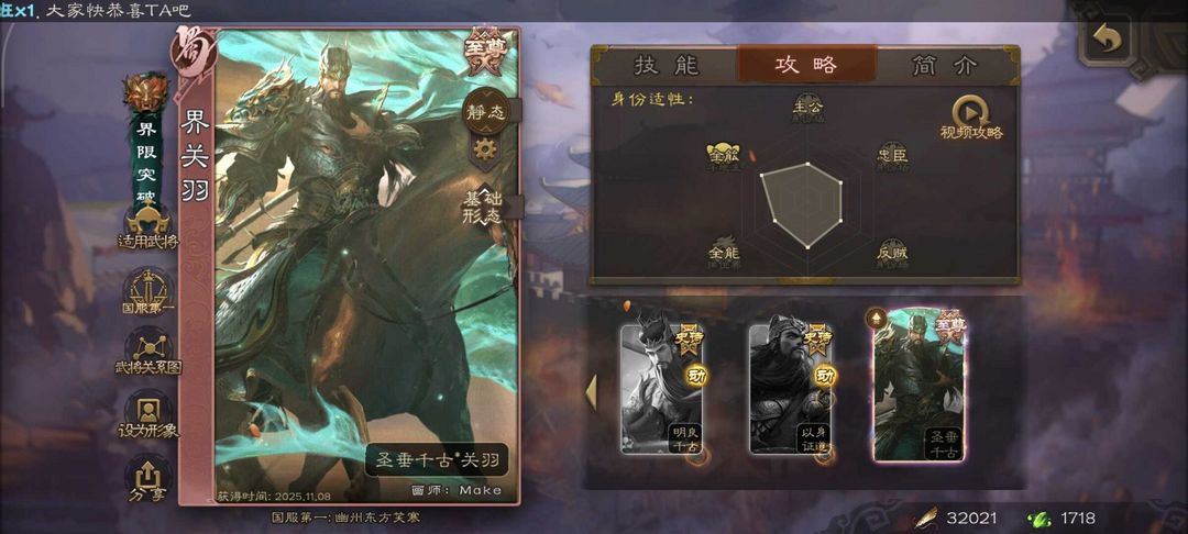 有卡/尝鲜专享/圣垂千古至尊关羽/鸠杀少帝界李儒/裴秀/杜预/张让/星黄忠