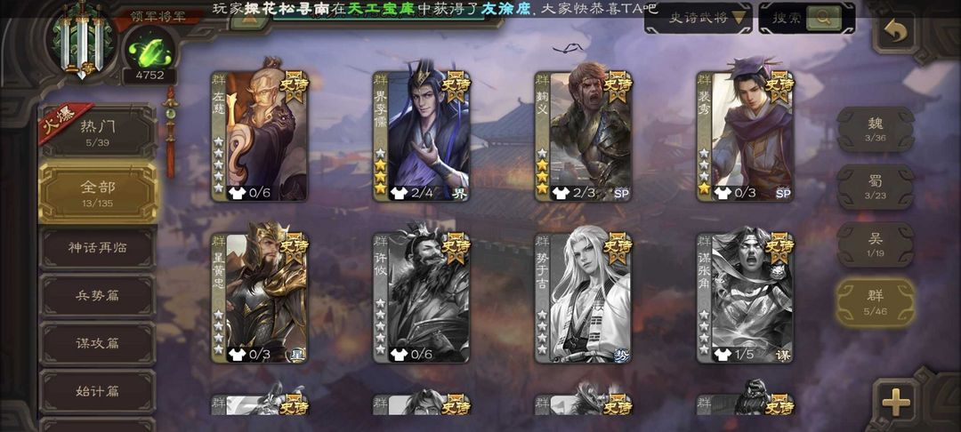 有卡/尝鲜专享/圣垂千古至尊界关羽/裴秀/孟达/星黄忠/鸠杀少帝界李儒/回廊鞠义