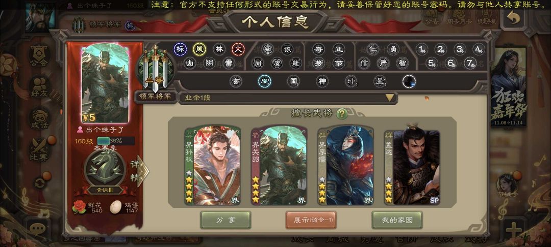 ✨感谢将军们对小店的厚爱~✨ 温馨提示:一、所有账号均为游卡官方版本,安卓苹果都可登录 二、所有账号【有卡】标记均三卡充足;【有点将卡】标记均只有点将卡充足。 三、郑重承诺:出租时间到时会改密,但小店20分钟内绝不顶号!(20分钟到时会顶号,建议兄弟合理安排时间,以防影响游戏体验,见谅!) 四、遇到游戏登录不上的情况,先把移动数据关掉再打开即可 !五、手杀新增逃跑封号机制,为了能够持续给大家提供优质服务,小店对于恶意逃跑者永久拉黑并举报平台封禁账号,望大家理解。 最后祝大家身体健康,玩的愉快!!本小店可以收藏哦!!